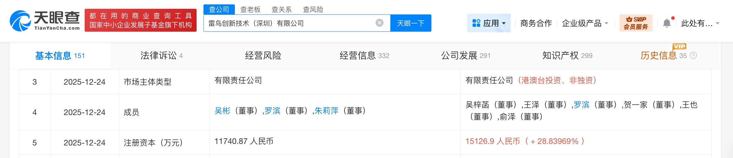 雷鸟创新技术(深圳)有限公司成立于2021年12月,法定代表人为李宏伟,经营范围含可穿戴智能设备制造、可穿戴智能设备销售、虚拟现实设备制造、虚拟现实内容制作、计算机软硬件及辅助设备批发、人工智能基础软件开发等,现由李东生、宁波挚诚拓远企业管理合伙企业(有限合伙)、惠州TCL移动通信有限公司及上述新增股东等共同持股。