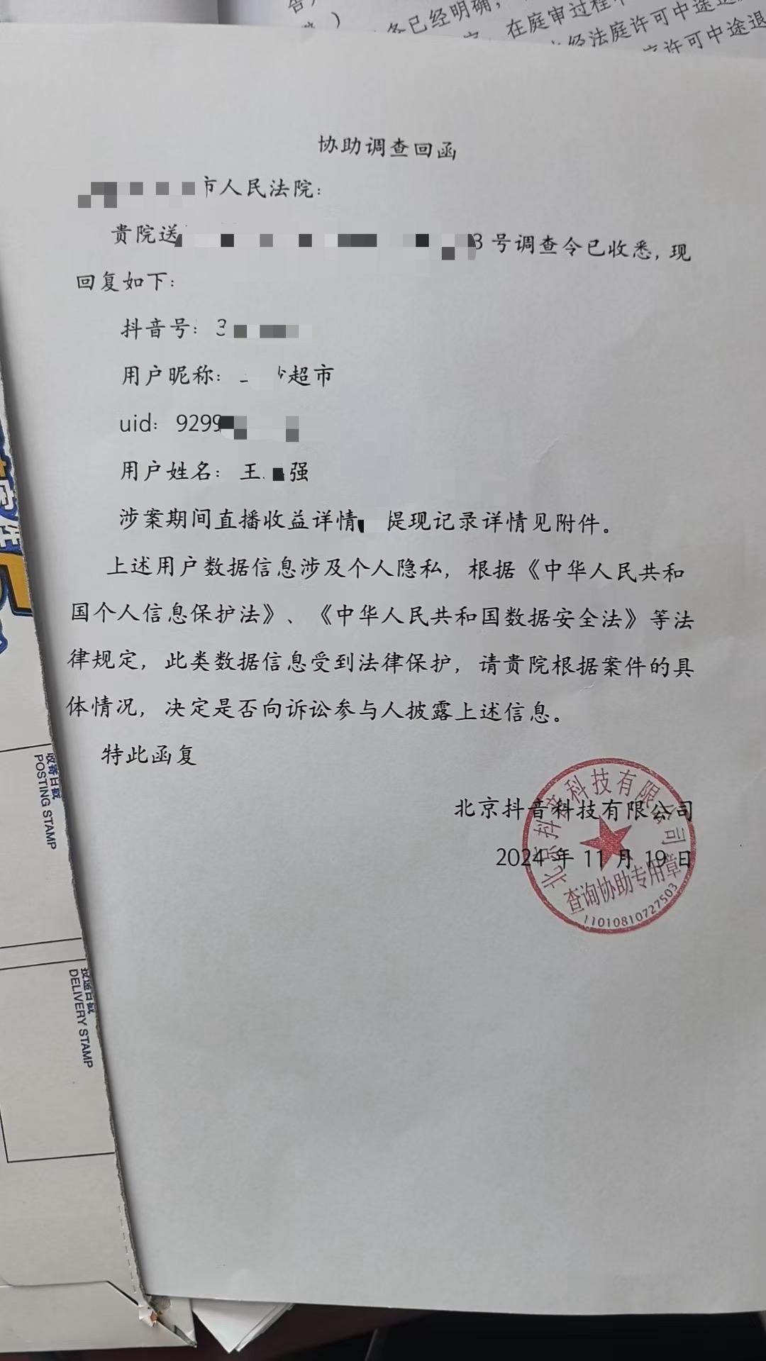 公开的抖音账号显示,“某某超市”认证为“歌手”,性别“男”,年龄“40”。账号备注为“热歌追踪者、歌曲追随者”,目前拥有287万粉丝,发布有131个唱歌视频作品,获得2114万赞。北京抖音科技有限公司向某法院出具的“协助调查回函”显示,“某某超市”抖音账号的用户姓名为王某强。