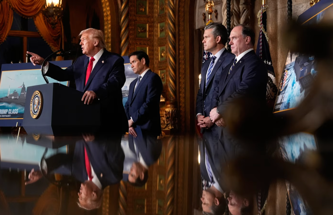 ◆佛罗里达州海湖庄园,特朗普与国务卿卢比奥、国防部长赫格塞思、海军部长费伦一同出席记者会。