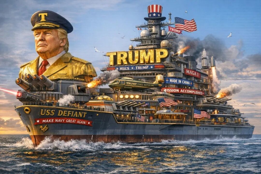 ◆针对“特朗普”级战列舰的讽刺漫画。