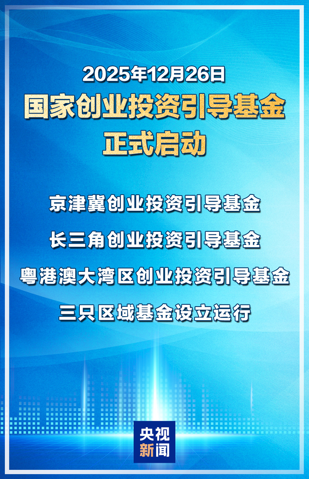 记者从国家发展改革委了解到,今天(12月26日),国家创业投资引导基金正式启动,京津冀创业投资引导基金、长三角创业投资引导基金、粤港澳大湾区创业投资引导基金三只区域基金设立运行。