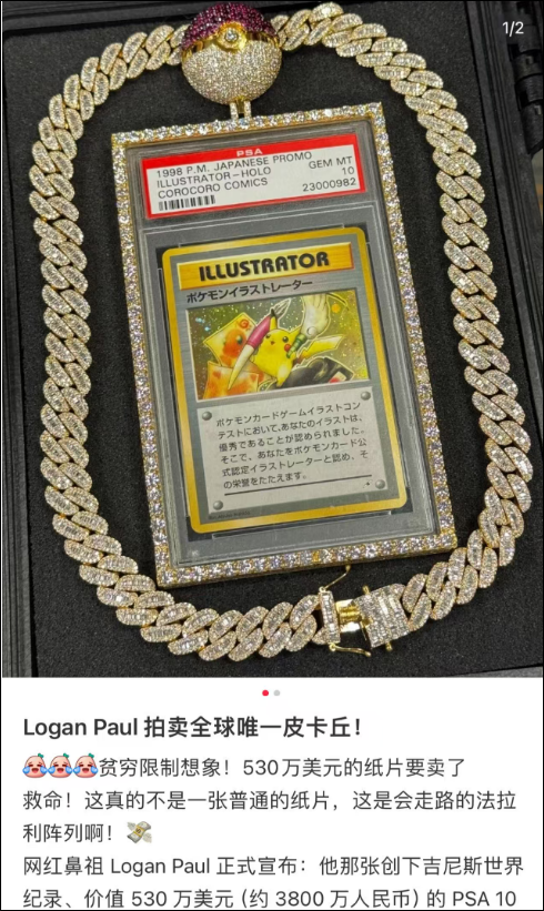 近日,从话题网红成功转型企业家的罗根·保罗,再度成为焦点。他宣布明年初拍卖手中一张要价530万美元(约人民币3713万元)的“皮卡丘插画家”稀有宝可梦卡牌。