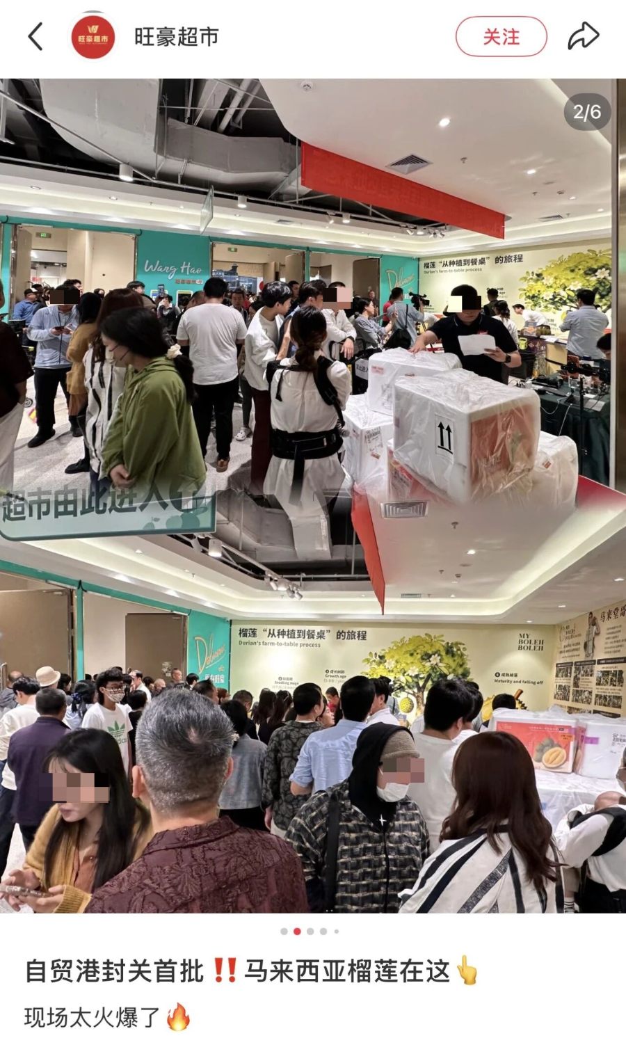 封关首日,旺豪超市的榴莲摊前就排起了长队。