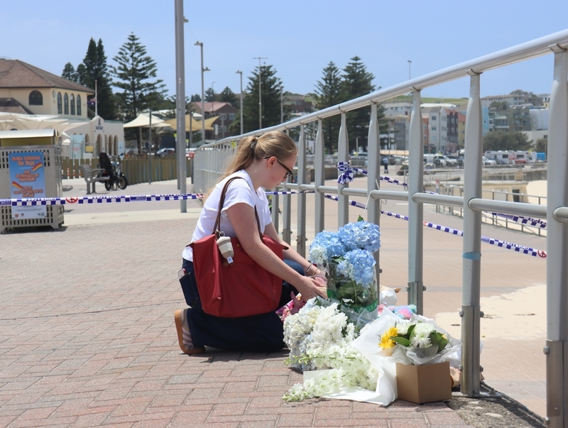 12月15日,悉尼市民前往邦迪海滩事发现场献花致哀 东方IC