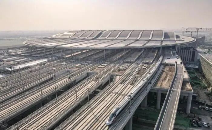 ▲图为航拍雄安开往北京西的C2704次列车驶出雄安站(图源:中新社)