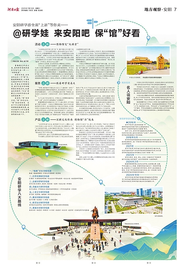 这一年,记者扎根景区一线,用镜头捕捉演出的震撼瞬间,用文字记录游客的真情感悟;我们深挖背后故事,解读研学产品的教育内核,探寻夜游经济的增长密码。专题报道串联起四季文旅亮点,深度解读解码产业发展逻辑,策划稿件传递从业者的坚守与创新。我们让殷墟的甲骨纹路、红旗渠的精神密码、古城的烟火气息,通过笔墨与镜头成为刷屏热点,为安阳文旅吸引流量、沉淀流量,助力千亿级文旅产业集群建设的铿锵步伐。