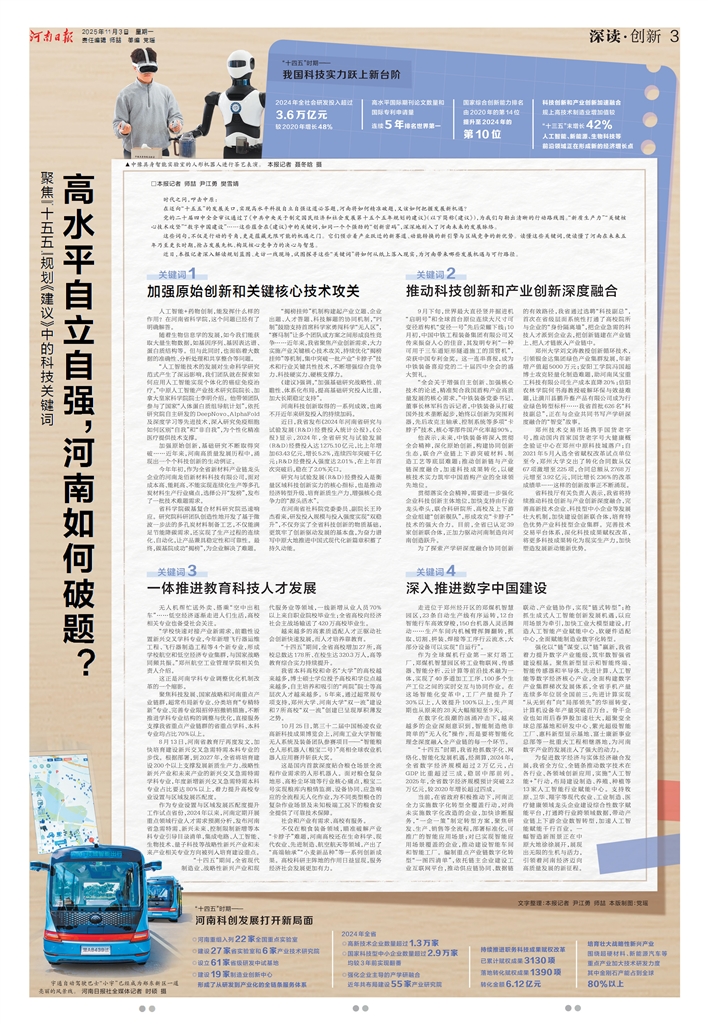 党的二十届四中全会擘画未来发展蓝图,当“新质生产力”“关键核心技术”这些关键词成为全省热议的话题,我们追问的是:它究竟如何改变普通人的日常?于是,我们走进产业集聚区、探访初创企业、对话科研团队,将宏大的国家叙事,转化为一条条可操作的路径、一项项能申报的课题、一个个可感知的新产品。这些,最终凝结为企业车间里新添的生产线,也照亮了科研人员下一步的攻关方向。