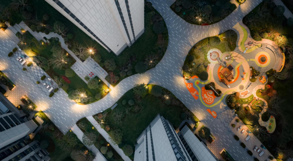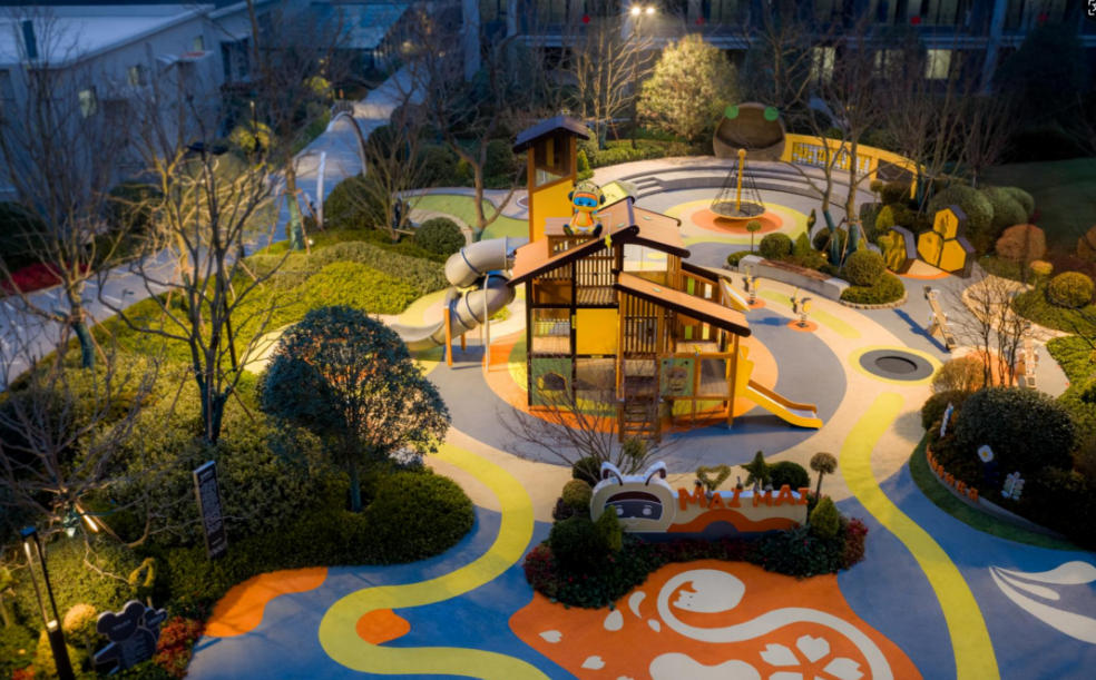 园林景观层次丰富,草木葱茏,四季有景;全龄活动区、健康步道、休闲会客厅等多元空间巧妙布局,满足孩童嬉戏、长者休憩、邻里交流的不同需求。