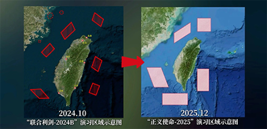 另据央视新闻此前报道,国防大学教授孟祥青在接受采访时表示,东部战区在第一时间发布了演习区域图。通过对比 2022 年反制佩洛西窜台时的六大演习区域,本次划分的五个区域呈现出显著的新特点。