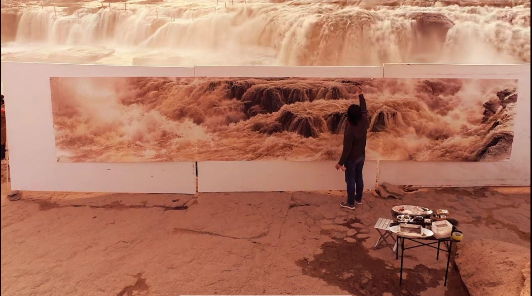 徐惠君在黄河边创作(来源:太原市美术馆微信公众号)