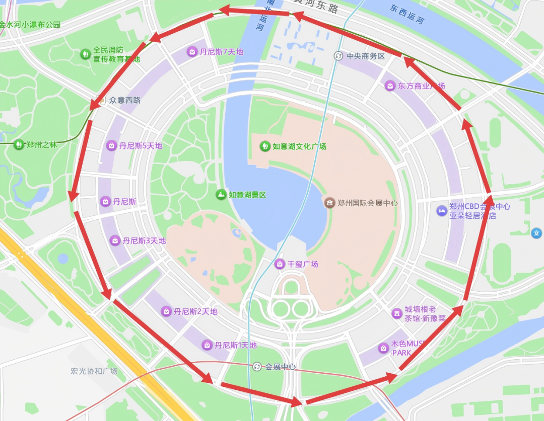 外围分流:同一时段,视情况在更大外围区域【京广快速路(不含)、河医立交(不含)、金水路(不含)以东及以南,紫荆山路(不含)以西,城南路(不含)、南顺城街(不含)、大同路(不含)、福寿街(不含)、正兴街(不含)以北的合围区域】采取远端分流措施进行分流,引导车辆绕行。