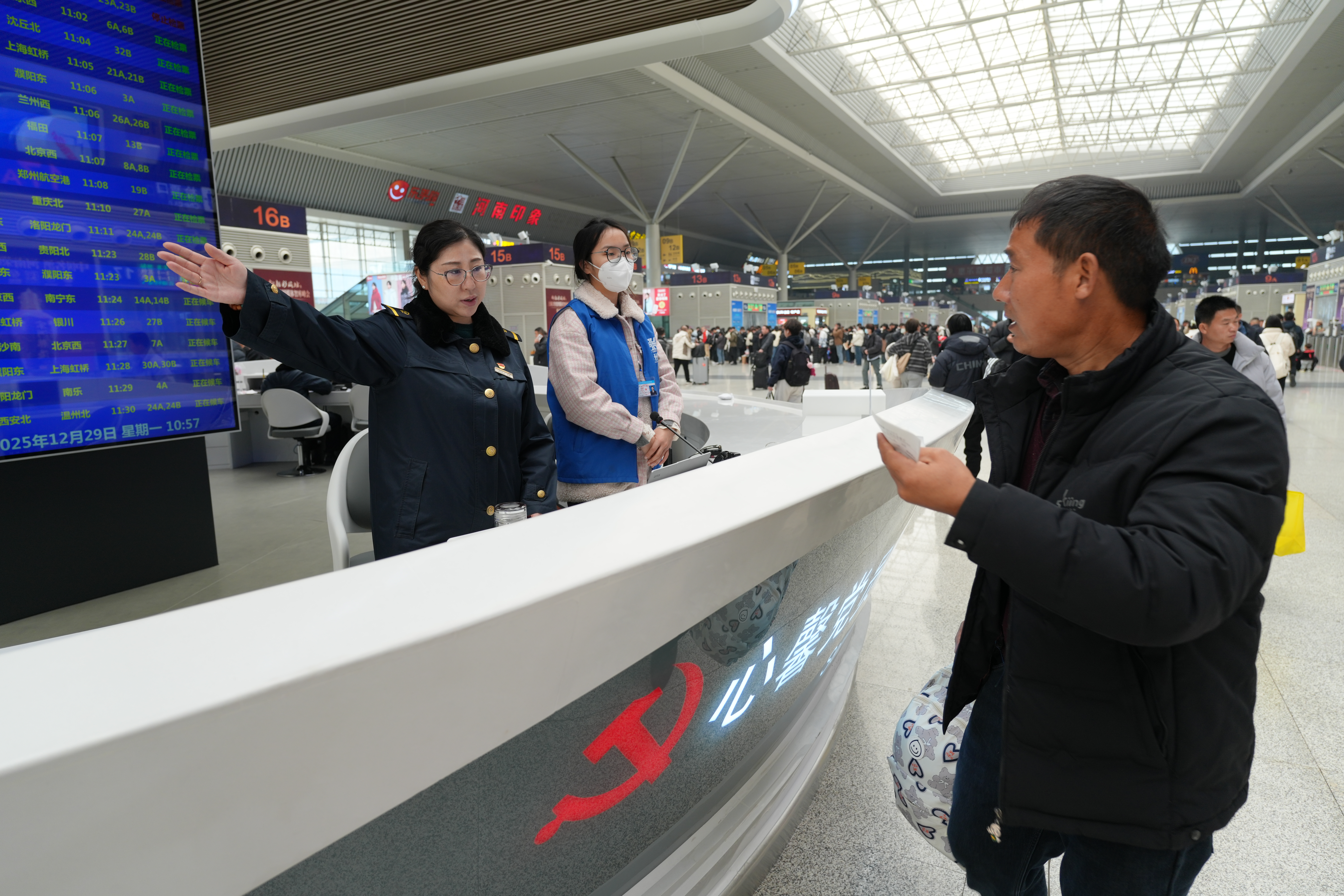 除此之外,郑州站还不断优化细节服务,提升旅客出行体验。元旦期间,郑州东站“心馨”党员服务台升级亮相,新升级的服务台经过科学划分,咨询区、自助区、重点旅客服务区界限清晰又相互衔接,布局更显人性化。新装的立体LED屏幕格外亮眼,列车时刻、检票口位置、正晚点动态等出行资讯滚动更新。