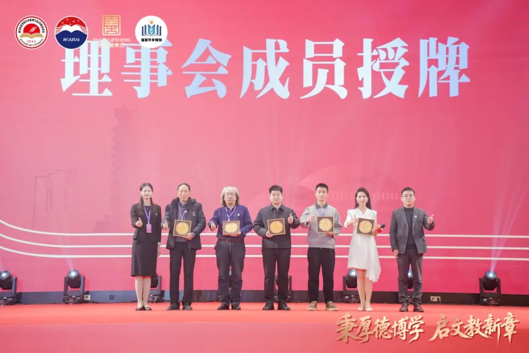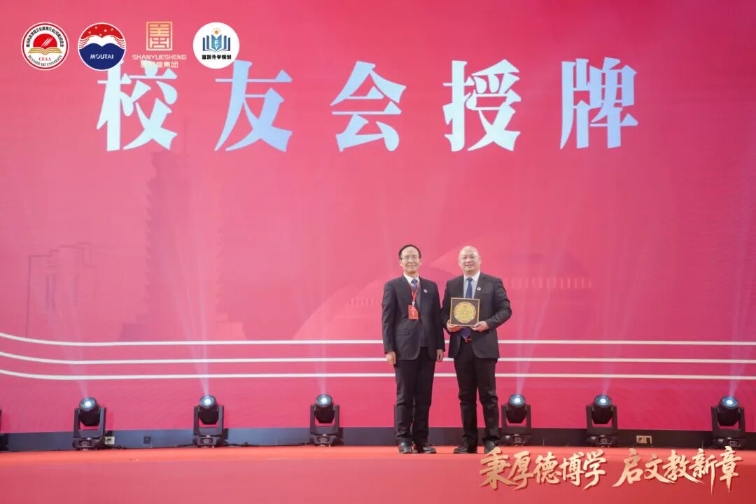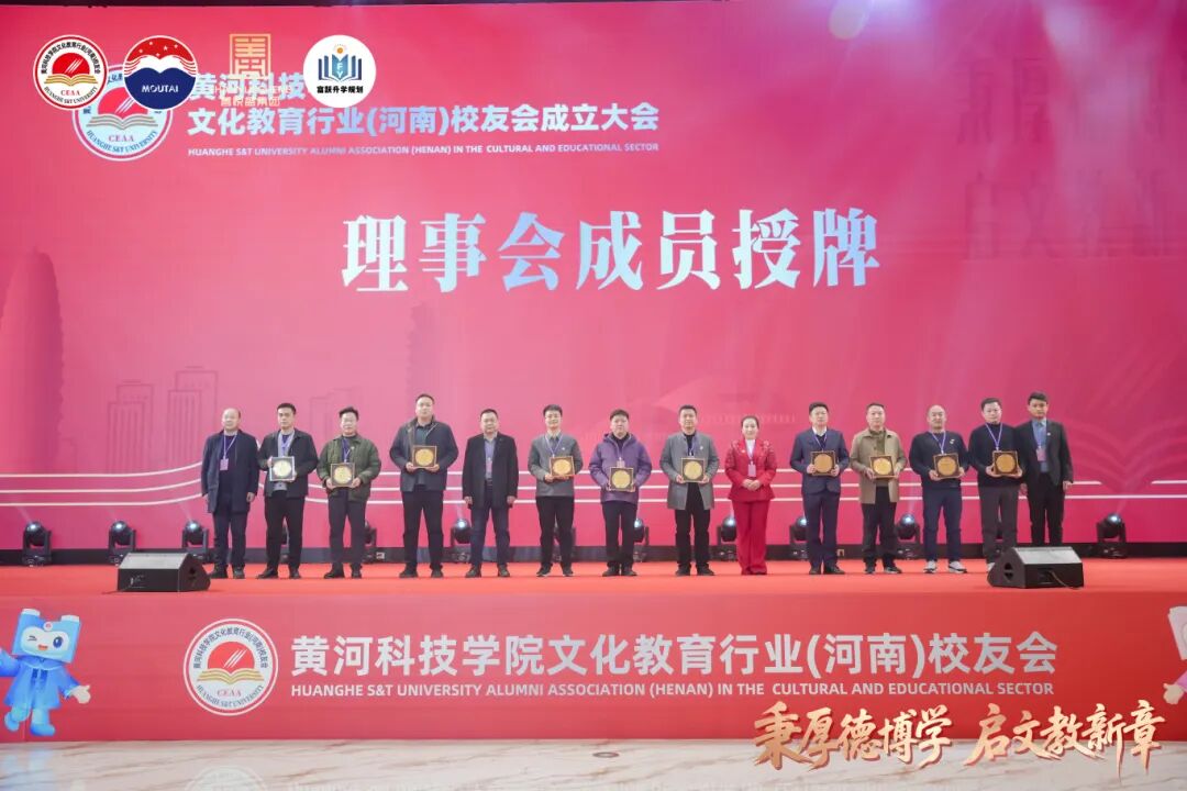 大会现场,罗煜代表学校向文化教育行业(河南)校友会授予会牌,并向第一届理事会会长颁发了聘书。
