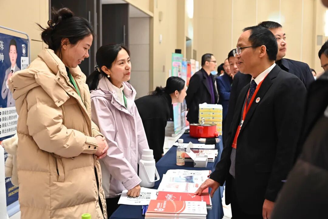 罗煜仔细查看各展位产品,不时与参展校友交流,对校友们带来的产品给予高度评价。他希望校友会平台能够充分发挥作用,加强对校友优质产品的宣传与推广,为校友间的交流合作搭好台、铺好路。