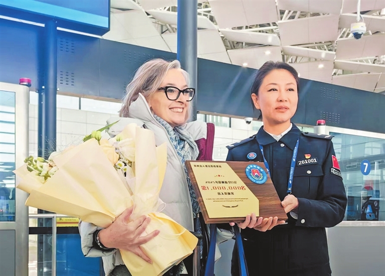12月26日,意大利籍旅客Sabrina成为郑州航空口岸今年第100万名出入境旅客。