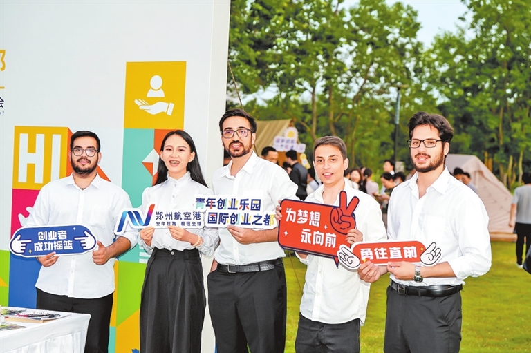 形式多样的人文交流活动,为“空中丝路”注入了情感温度与文化内涵。图为9月2日在郑州航空港举行的“国际青年创业分享会”。