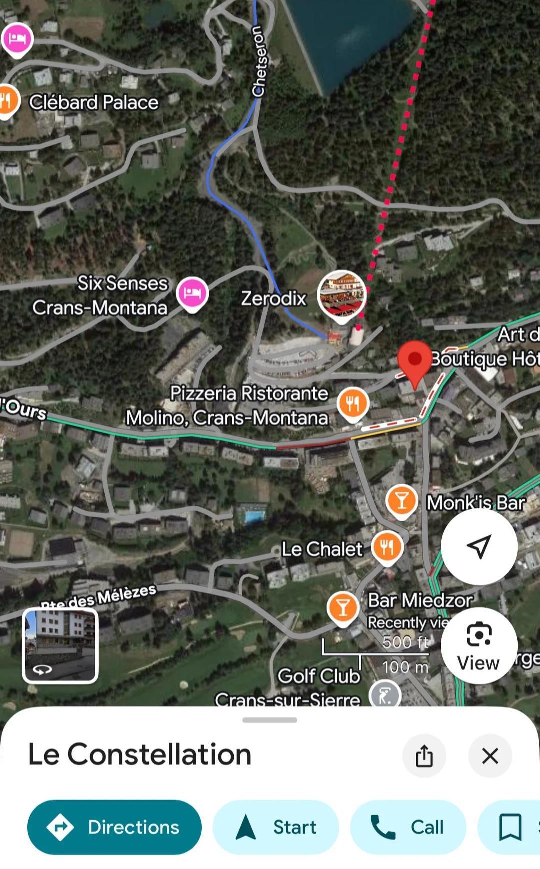 此前,唐女士曾去过该酒吧几次,对于酒吧的构造有所了解。“酒吧位于瑞士著名滑雪场返程的必经之路,在克朗-蒙大拿小镇中心。”唐女士向记者展示酒吧的位置图表示,这家酒吧属于比较老旧的,平时也有民众来喝酒,但不算特别火爆,老板是法国科西嘉人。