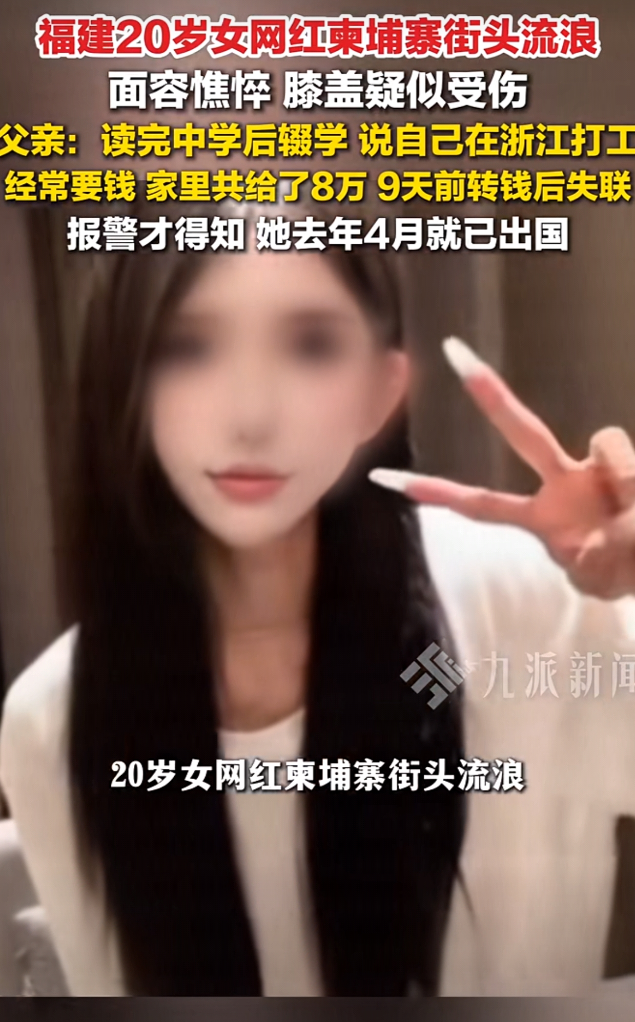 近日,一段“中国女网红在柬埔寨街头流浪、腿部疑似受伤”的视频在社交平台广泛传播,引发全网关注。网友指出,该女子系福建籍网红“umi”,真实姓名为吴某桢。