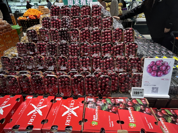 简俊成也有同感。他表示,今年车厘子到货量超过去年同期,而销售旺季(春节前10天至春节后10天)尚未到来,大量货源提前涌入市场,导致消化压力陡增。此外,在消费端,消费者购买欲望减弱,选购精品水果时更趋谨慎,并且更看重性价比。另一边,同期上市的国产精品水果价格远低于车厘子,也进一步挤压车厘子的市场空间。