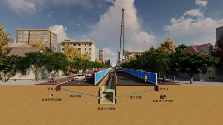 更新内容:在常青路现有道路基础上增加雨污水管网铺设,新村西路、南河路、北河路等新修道路随道路修建铺设雨污水管网,新铺设Ⅱ级钢筋砼雨水管5.48km,雨水管道管径DN600-DN800。新铺设双壁波纹污水管5.48km,污水管道管径DN500-DN700。