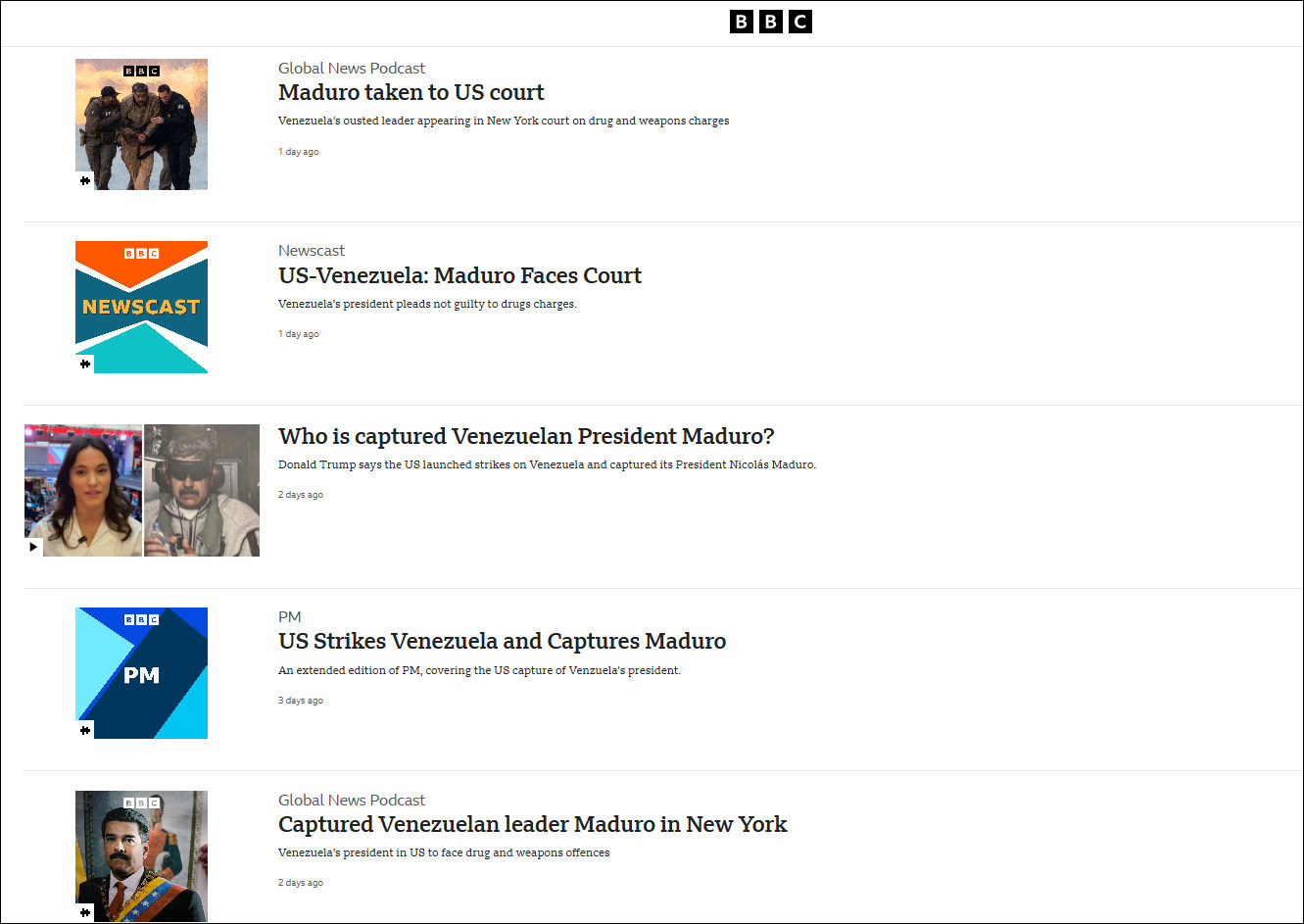 据苏格兰《国家报》1月5日报道,“臭名昭著”的英国广播公司(BBC)近日又被曝光禁止员工在报道美国政府强行带走委内瑞拉领导人马杜罗时使用“绑架”(Kidnapped)一词。
