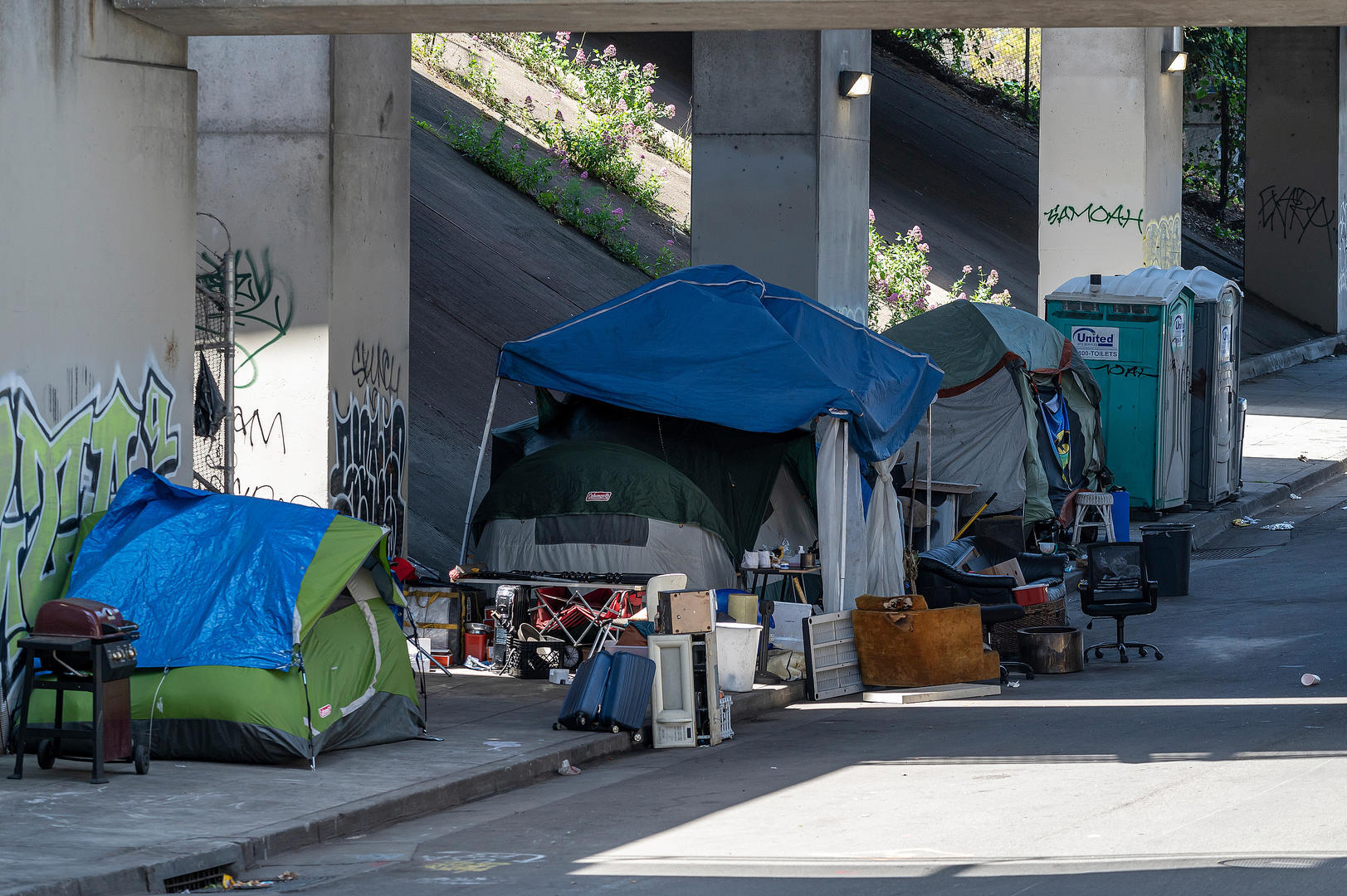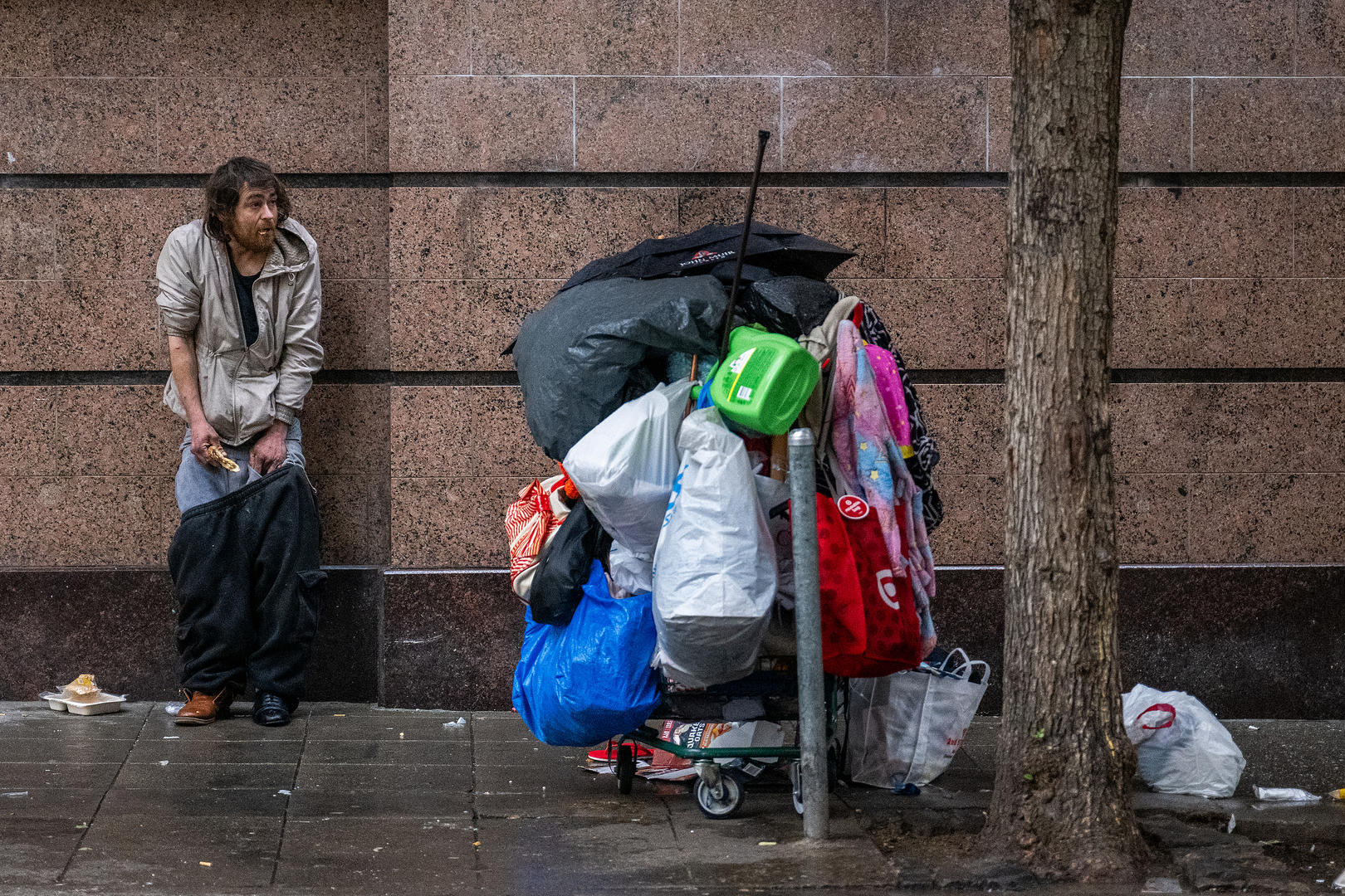 美国洛杉矶街头的一位流浪女性 图据视觉中国