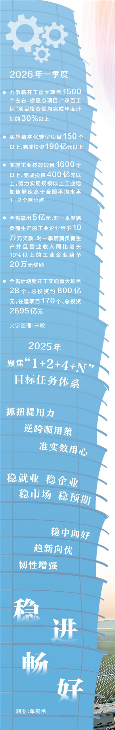 “为确保‘十五五’首季起好步、开好局,经初步测算,一季度全省计划新开工交通重大项目28个、总投资约800亿元,在建项目170个、总投资2695亿元。”付磊表示,将全力以赴抓进度,对在建重大项目实行清单化管理、精细化调度,优化施工环境,力争一季度形成更多实物投资量。