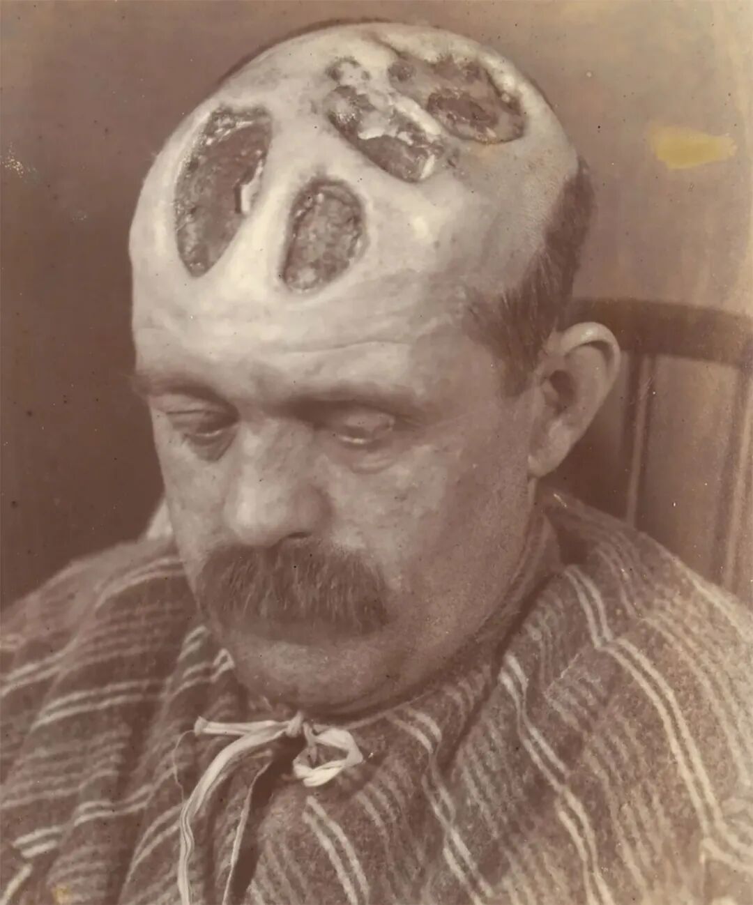 巴黎人类博物馆的梅毒三期患者面部畸形模型雕塑