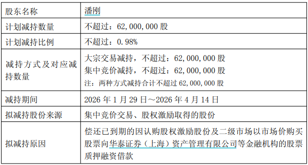 【大河财立方消息】1月7日,伊利股份公告称,公司董事长兼总裁潘刚计划通过大宗交易或集中竞价方式减持不超过6200万股,占公司总股本的0.98%,减持股份来源于股权激励及集中竞价取得。