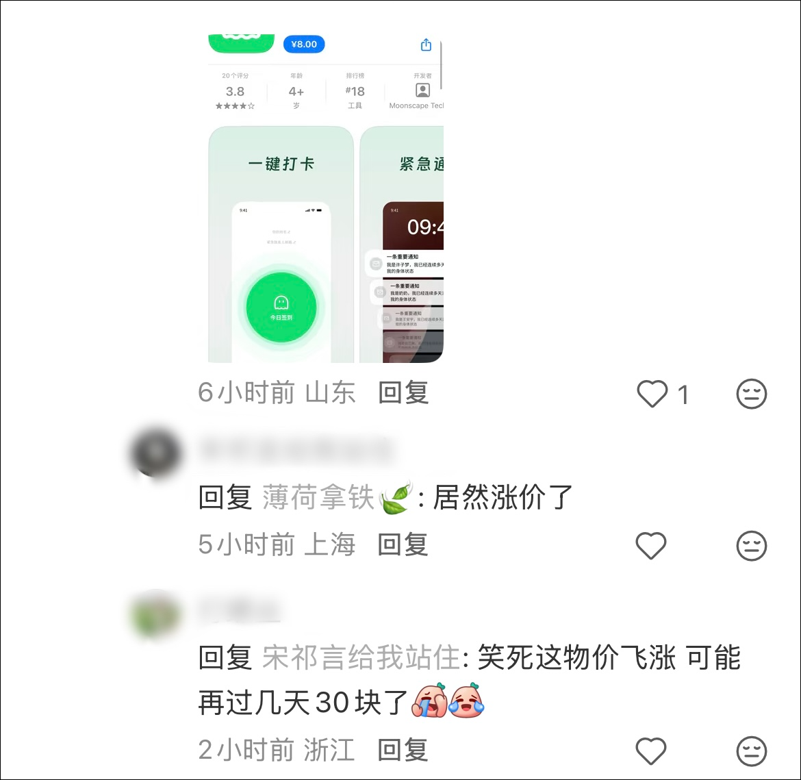 还有网友发现,博主晒出的截图是免费下载,不过昨天开始收费1元,“今天涨价了,要8元。”