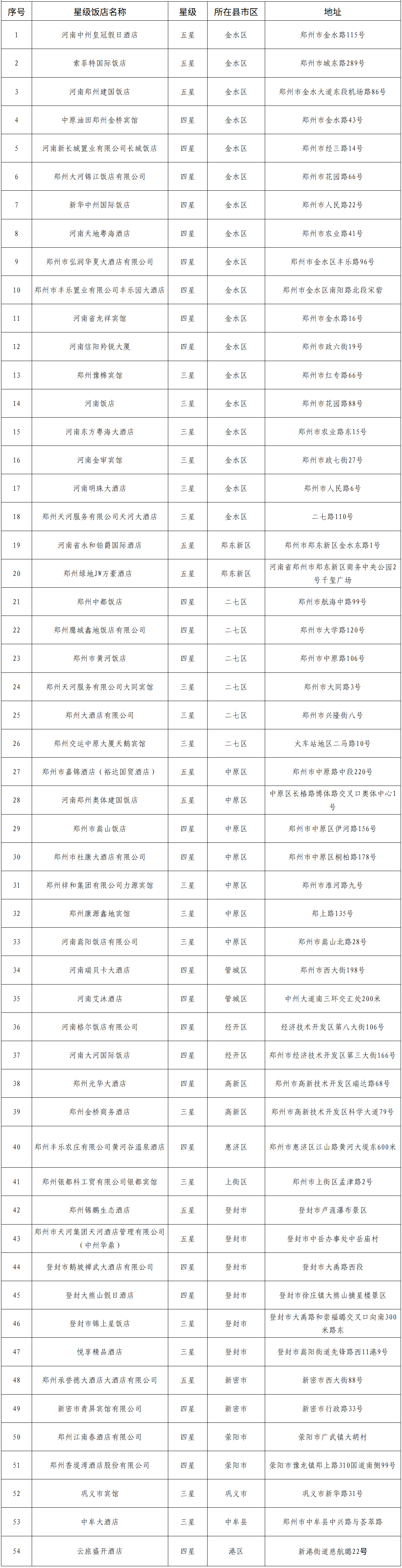 附:郑州市星级饭店名单
