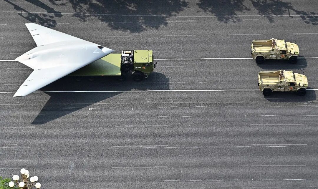 在中国人民抗日战争暨世界反法西斯战争胜利80周年大会上,空中无人作战方队接受检阅。新华社记者 胡智轩 摄