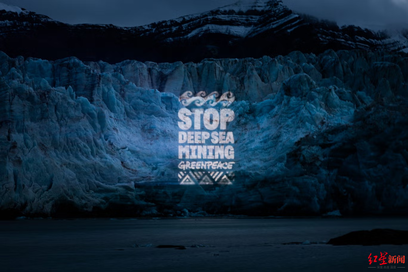 ▲北极冰川上的灯光投影呼吁停止深海采矿