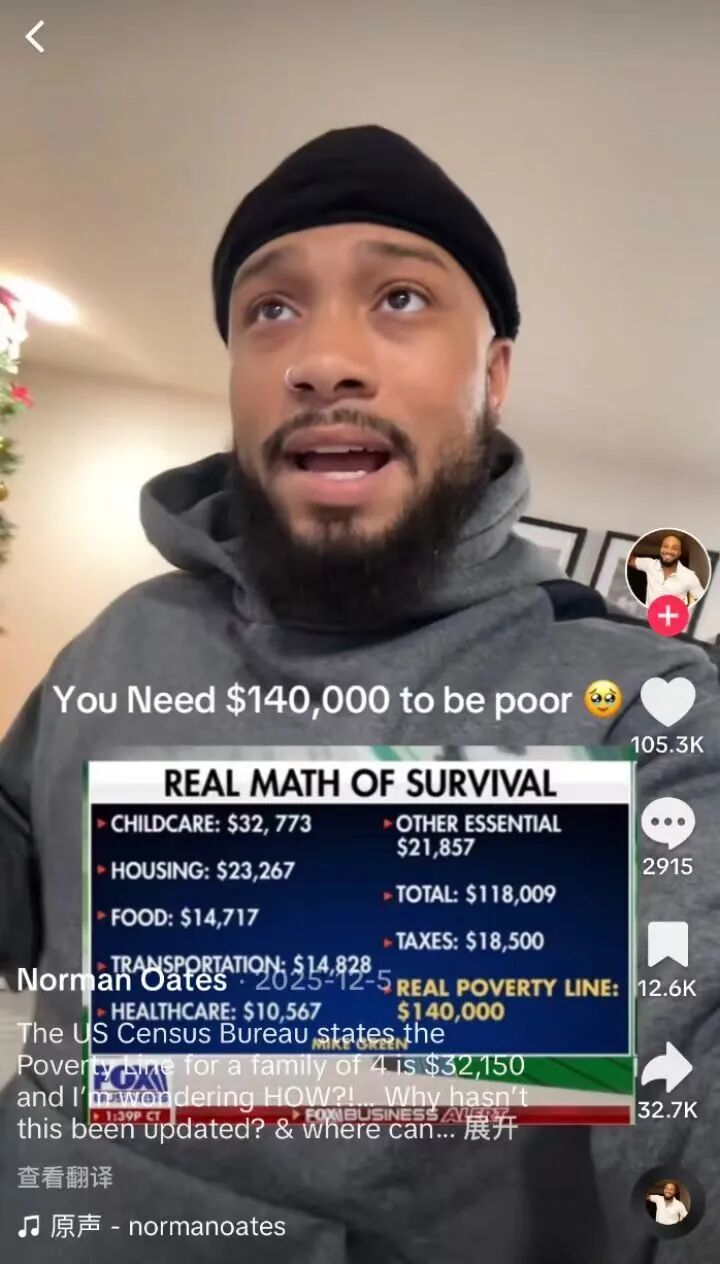 完全无法覆盖一个家庭每年14万美元的基础需求。