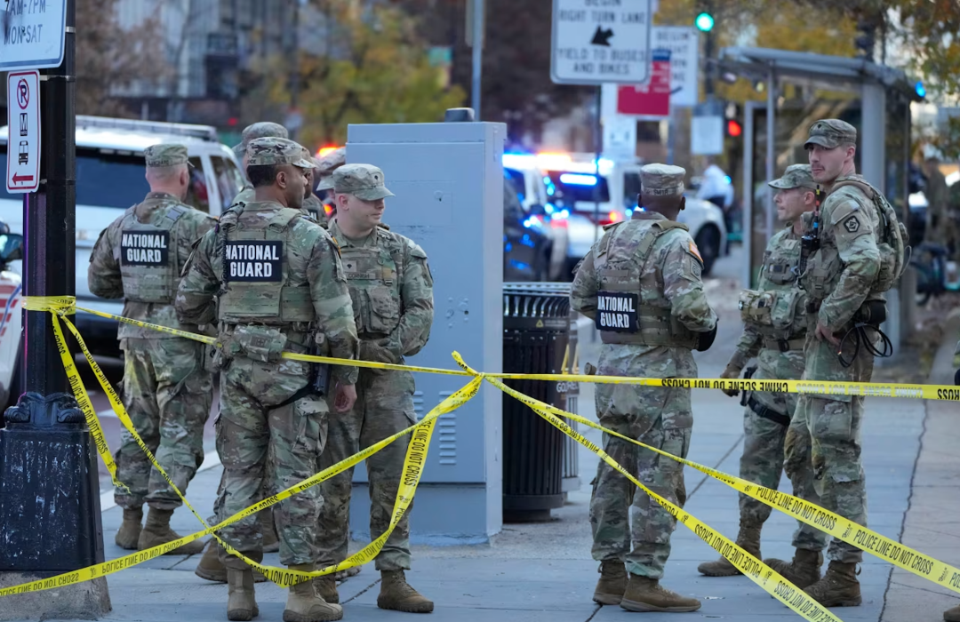 ◆2025年11月26日,华盛顿枪击事件后,国民警卫队在现场执勤。