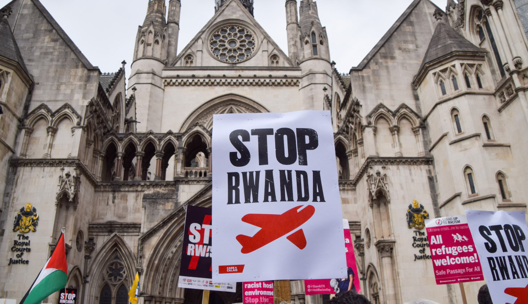 ◆2022年9月,民众抗议英国政府与卢旺达达成庇护移民安置协议。