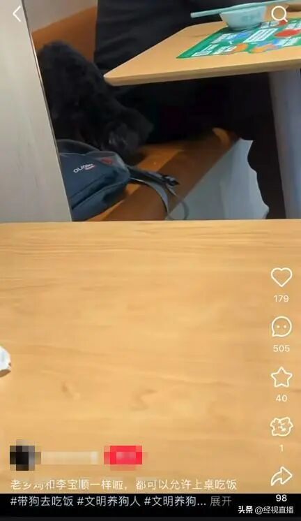 近日,有网友发帖反映,在老乡鸡合肥宝业城市绿苑店就餐时,发现一只黑色宠物狗跟随主人进店,还被放在餐厅椅子上进食,主人不时将食物放在椅子上投喂。该网友表示担忧,宠物狗足底可能沾染泥土、排泄物,抖毛或掉毛还可能污染食物,存在食品安全隐患。