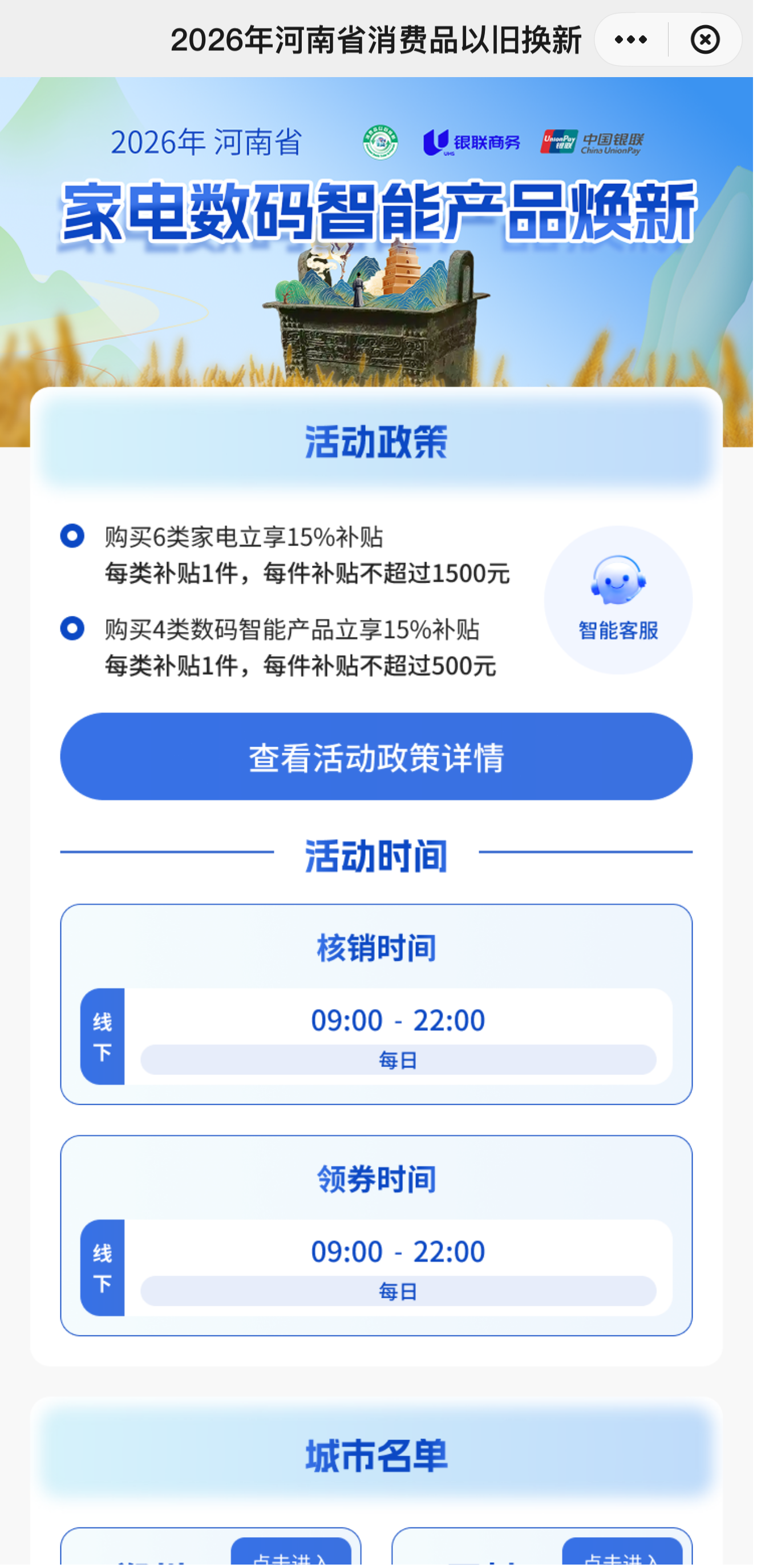 2026年初,我省就2026年河南省消费品以旧换新汽车、家电及数码智能产品领域补贴发出公告。据了解,2026年首批625亿元“国补”资金已下达,河南各地的优惠政策也陆续恢复。1月12日,郑州市商务局发布《关于启动2026年消费品以旧换新汽车、家电及数码智能产品领域补贴活动的公告》(以下简称《公告》)。