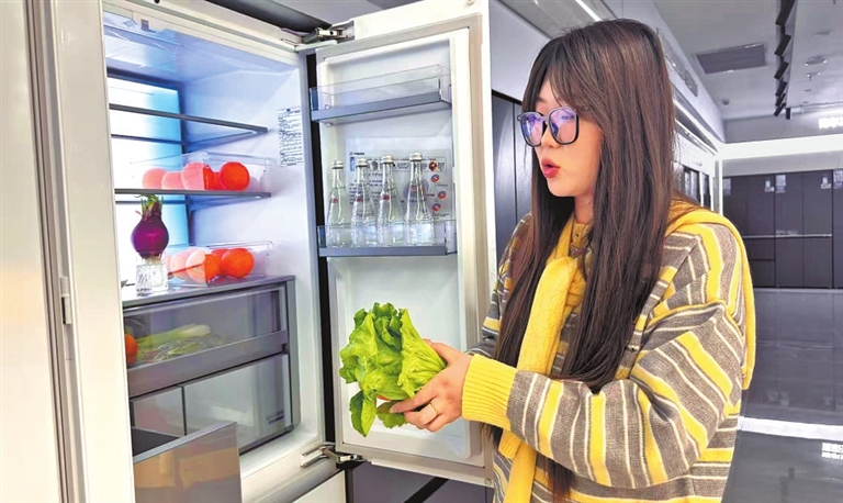 脸上妆容淡雅,身着深黄与浅灰相间的休闲毛衣,2025年12月28日上午,镜头前的刘美祺正以甜润的嗓音,向观众介绍一款全新上市的冰箱。产品功能、技术参数、使用场景……她娓娓道来,流畅而专业。