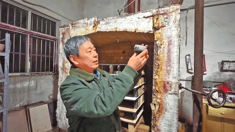 站在窑炉前,王国奇在比对试烧出来的汝瓷釉色。