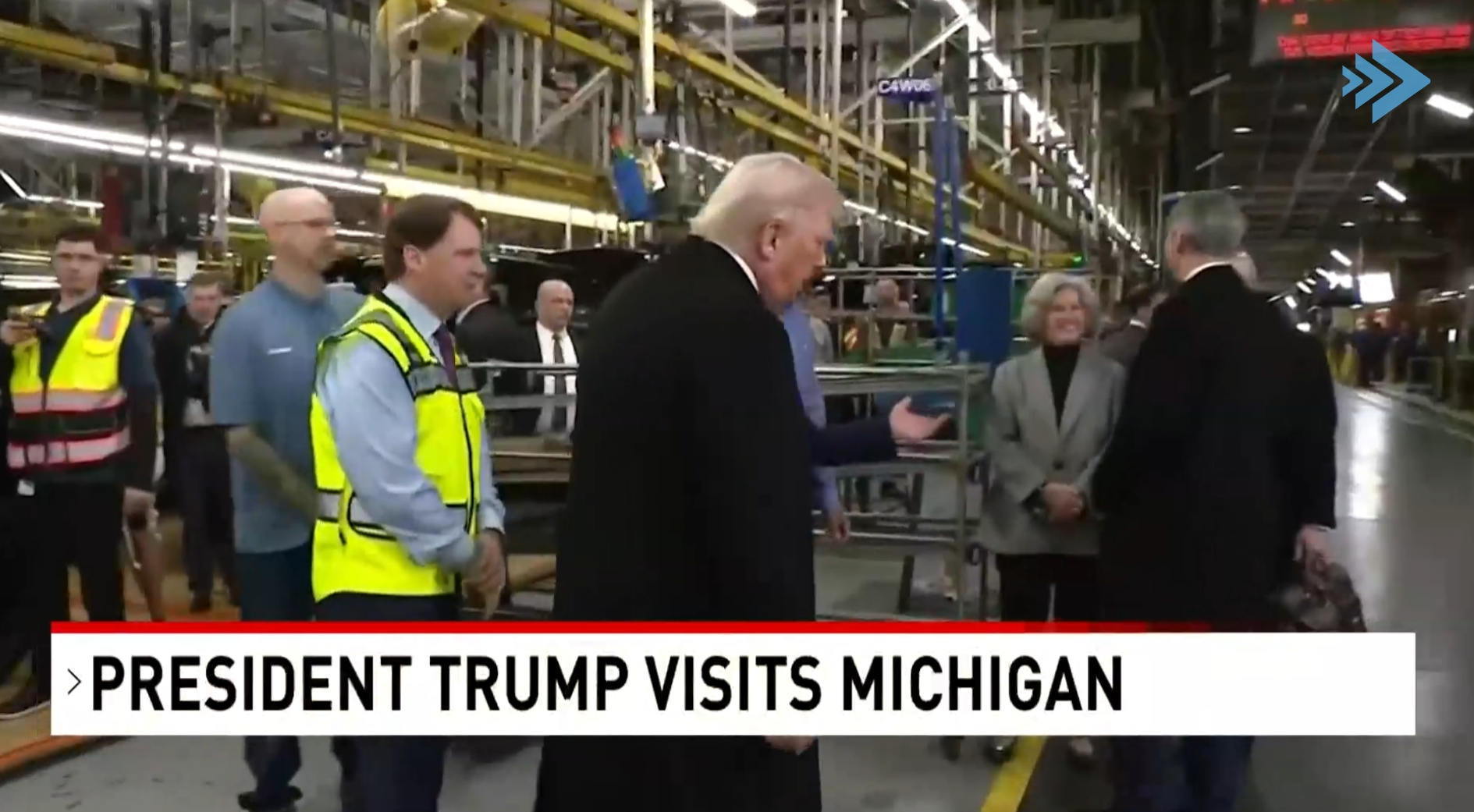 在视察这家汽车工厂期间,特朗普还停下脚步接受记者采访。对于重新谈判《美墨加协定》(USMCA)的提议,他表现得漠不关心。
