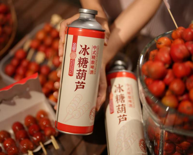 金星啤酒及时捕捉到了市场变化,从2024年开始向中式精酿转型,陆续推出毛尖、龙井绿茶、茉莉花茶、蜜桃乌龙等茶啤系列,以及冰糖葫芦、绿豆、水蜜桃、西瓜、砂糖桔等“国潮食啤”及“果韵佳酿”系列,精准契合年轻消费群体对“好喝、好看、好玩”的需求。通过茶叶与啤酒的融合,让啤酒从“西方符号”转变为体现东方风味的饮品载体。