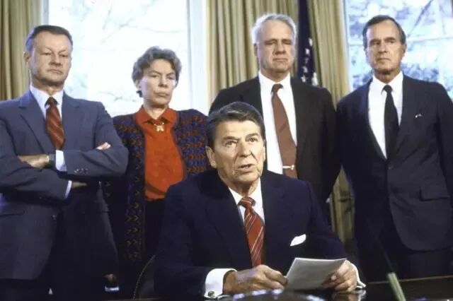 图为里根发表讲话敦促国会向尼加拉瓜叛军提供1400万美元的援助。1984年尼加拉瓜向ICJ提起的诉讼,指控美国政府在冷战背景下非法支持反政府武装“康特拉”、在尼加拉瓜港口布设水雷,并侵犯其主权、违反国际法。尽管ICJ于1986年判定美国违反了《联合国宪章》,但是美国拒绝承认ICJ对此案的强制管辖,拒绝出席判决程序,也未执行赔偿裁决(图源:BBC)
