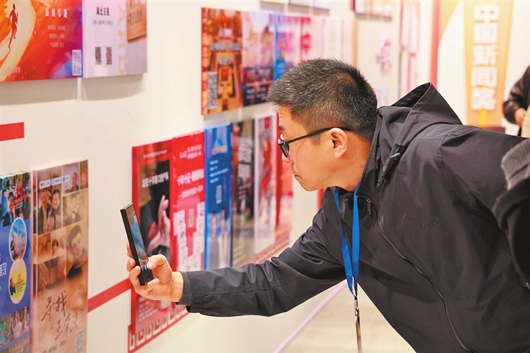 1月14日,第35届中国新闻奖获奖作品展吸引嘉宾驻足拍照。