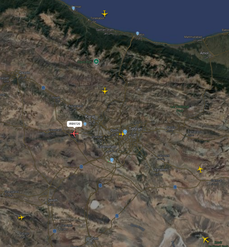 在炸弹落地之时,德黑兰上空民航机情况