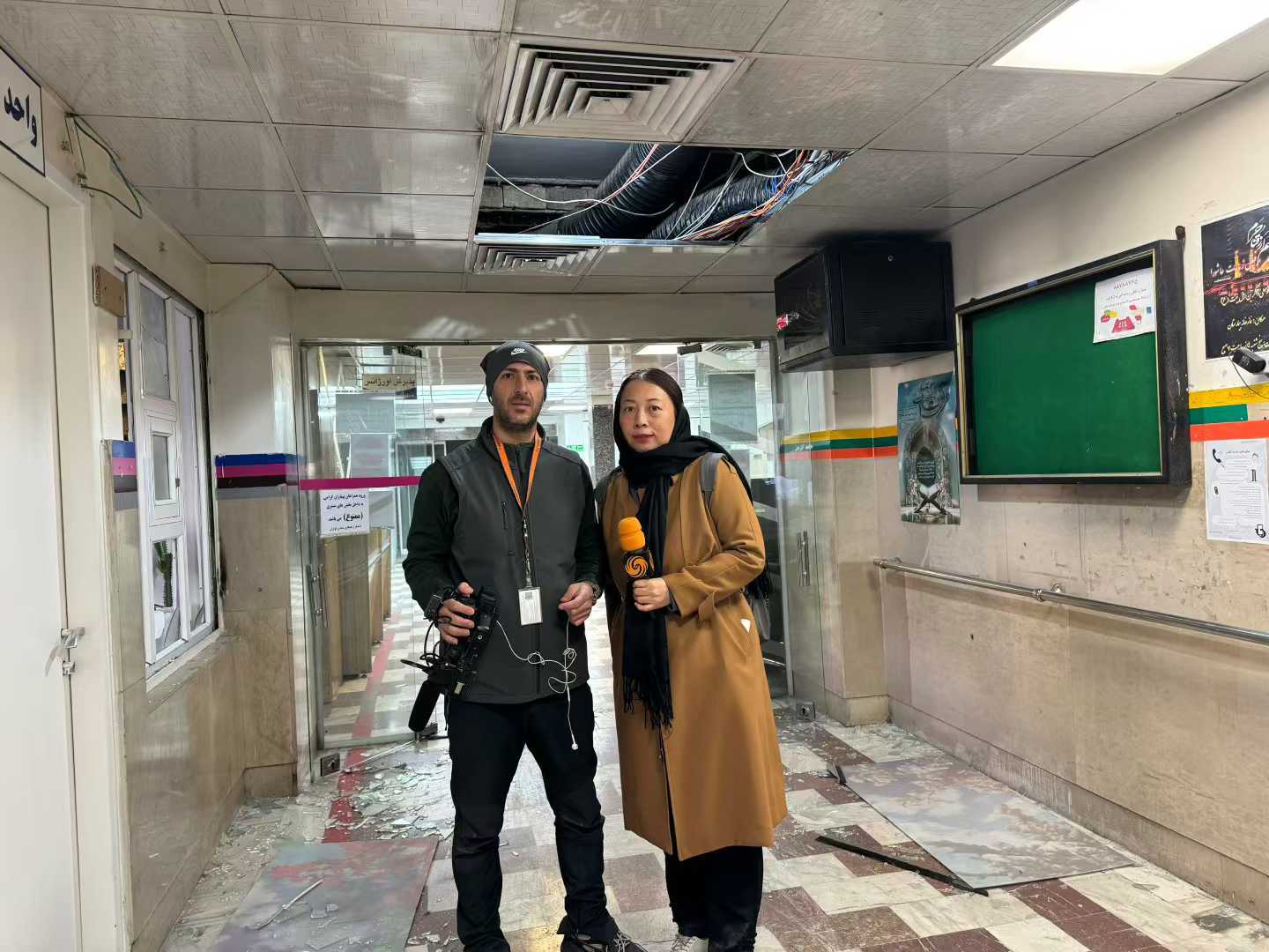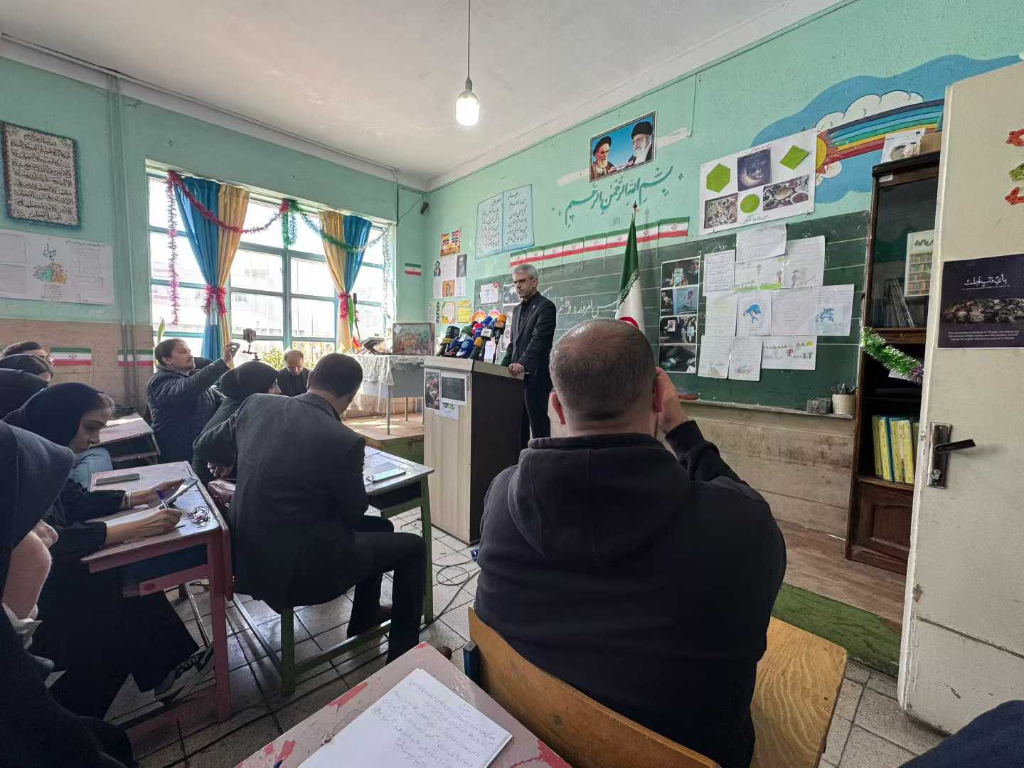 空气里有明显的硝烟味和烧焦味,呛鼻,我忍不住咳嗽了几下,就像一种挥之不去的“德黑兰新气味”。发布会上,巴加埃谴责美以袭击,重点提到米纳布小学儿童伤亡,说美以是在犯反人类罪和战争罪,呼吁国际社会制止这样的罪行。那天伊朗第一次无人机击中阿联酋的一处油田,并击中多艘试图通过霍尔木兹海峡的船只。他对我关于日本记者和“中方希望避免打击油气设施”等问题作了回应,强调“误击不在计划内,各方应保持克制”。他还主动提到:中国与伊朗关系好、两国外长通话,但作为安理会常任理事国,中国“有更重要的责任”不能视而不见——我能感到他话里带着一种“希望中国更明确站出来”的压力与不满。此外我也奇怪,他怎么不回答我第一个问题。因为1月被捕的NHK记者现在没有消息,在埃温监狱不知道怎么样了,旁边的伊朗记者说,都这时候了谁还关心这个。巴加埃带着大家参观受损的小学,我急忙凑上前去请求他为我们凤凰三十年台庆说几句话,这个在1月份我已经写了很多申请,他们一直说没有时间之后会考虑,但现在这个战事不知道什么时候还能再有机会。还好巴加埃是个好人,很给面子,看着我还是同意说了三十秒的祝词,他肯定凤凰卫视发挥的重要作用,并希望我们能做出客观中立的报道,不要被西方媒体带偏。终于我总算完成了台里的任务。