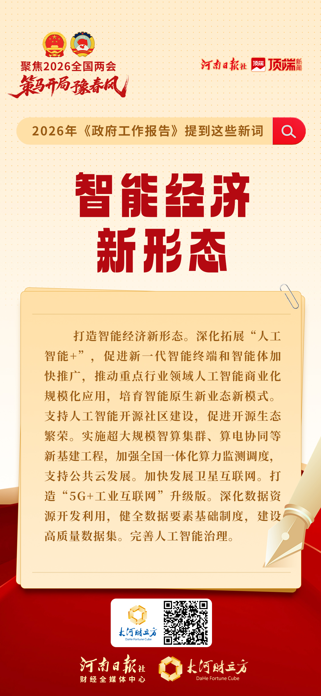 3月5日,十四届全国人大四次会议开幕,国务院总理李强作政府工作报告。城乡居民增收计划、中小学春秋假、未来能源、中国服务、智能经济新形态、新基建工程等首次写进政府工作报告。