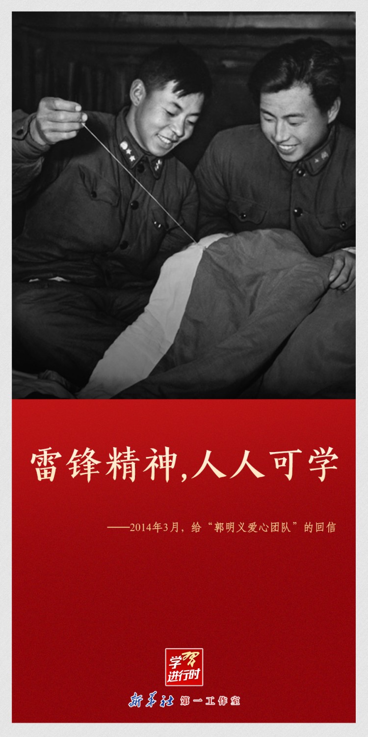 【学习进行时】“雷锋精神永不过时”“让学雷锋活动融入日常、化作经常”“雷锋精神,人人可学”……党的十八大以来,习近平总书记多次动情地谈到雷锋精神。在学雷锋纪念日到来之际,让我们一起重温习近平总书记关于雷锋精神的重要论述。