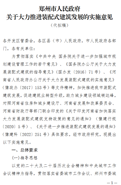 【大河财立方消息】 3月6日,郑州市城乡建设局发布关于公开征求《郑州市人民政府关于大力推进装配式建筑发展的实施意见(代拟稿)》意见的通知。征求意见时间为2026年3月6日~2026年4月6日。