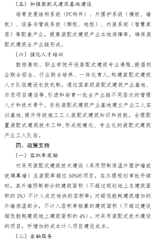 政策支持方面,意见稿提出,配合省级相关部门支持金融机构对建设装配式建筑产业基地(园区)、项目及从事技术研发等工作且符合条件的企业,开辟“绿色”通道,加大信贷支持力度,拓宽抵押质押的种类和范围,并在贷款额度、贷款期限及贷款利率等方面予以倾斜。对使用住房公积金贷款购买装配式商品住房的,按照差别化住房信贷政策给予支持,贷款额度最高可上浮20%。